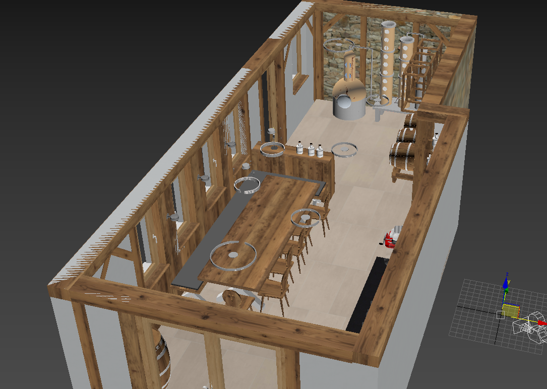 In this project, we had two assignments. The first one was to create still 3D renderings. Namely, the customer wanted us to make 5 photorealistic interior views of the distillery in 4k resolution.